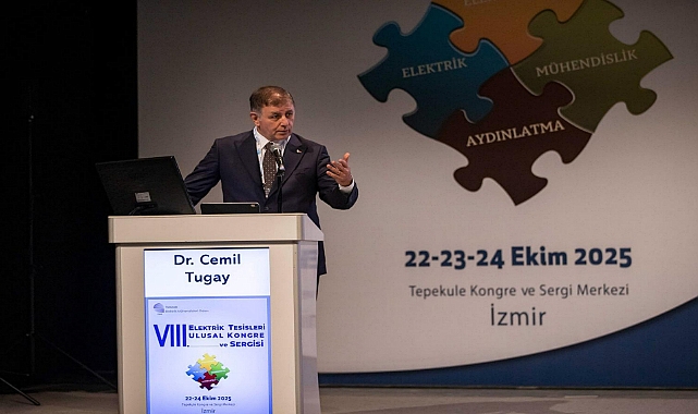 İzmir Büyükşehir Belediye Başkanı Dr. Cemil Tugay, Türk Mühendis ve Mimar Odaları Birliği (TMMOB) Elektrik Mühendisleri Odası (EMO) İzmir Şubesi tarafından bu yıl 8’inci kez organize edilen Elektrik Tesisleri Ulusal Kongre ve Sergisi’nin açılış törenine katıldı. İzmir Tepekule Kongre ve Sergi Merkezi’ndeki etkinlik 22-23-24 Ekim 2025 tarihlerinde bilim insanları, üreticiler, tasarımcılar, uygulayıcılar ile kamu ve özel sektör temsilcilerini bir araya getirecek. Kongrenin açılış törenine Başkan Dr. Cemil Tugay’ın yanı sıra TMMOB Yönetim Kurulu Üyesi Bahadır Acar, EMO Yönetim Kurulu Başkanı Mahir Ulutaş, Aydınlatma Türk Milli Komitesi Başkanı Prof. Dr. Rengin Ünver, EMO İzmir Şubesi Başkanı Gülhan Gürler, ekonomist-gazeteci Dr. Emin Çapa, akademisyenler, sivil toplum kuruluşu temsilcileri, sektör temsilcileri ve öğrenciler katıldı. İklim krizine değindi