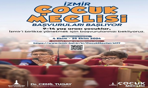 İzmir Büyükşehir Belediyesi Sosyal Hizmetler Dairesi Başkanlığı Çocuk Çalışmaları Şube Müdürlüğü tarafından sürdürülen çalışmalar kapsamında, İzmir Çocuk Meclisi’nin yeni dönem başvuruları 4 Ekim’de başlıyor. İzmir’de yaşayan 9-14 yaş arası tüm çocuklar, 4-25 Ekim tarihleri arasında, https://www.izmir.bel.tr/ ve https://www.bizizmir.com/internet sitelerinde yer alan başvuru formunu doldurarak veya kentin çeşitli noktalarında yer alan duyuru afişlerindeki QR kodu okutarak başvurularını gerçekleştirebilecek. İnternet erişimi olmayan çocuklar İzmir’in çeşitli noktalarında faaliyet gösteren İzmir Çocuk Merkezlerinden başvuru formuna erişebilecek.