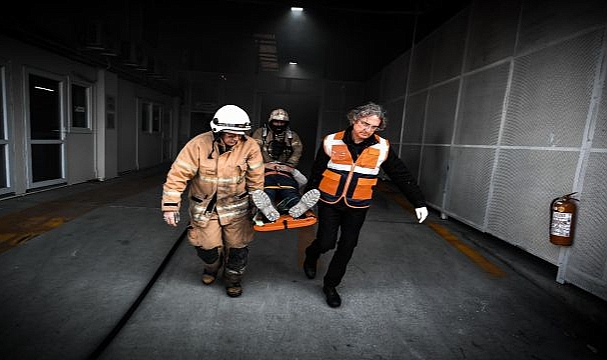 İzmir İtfaiyesi, İzmir Büyükşehir Belediyesi Buz Sporları Salonu ve ESHOT’un Gediz Ağır Bakım Tesisleri’nde deprem ve yangın tatbikatı yaptı. Afet İşleri Dairesi Başkanlığı’nın da destek verdiği tatbikatta deprem sonrası senaryo gereği yangın çıktı. Ekiplerin tahliye, kurtarma ve yangın söndürme çalışmaları gerçeği aratmadı.