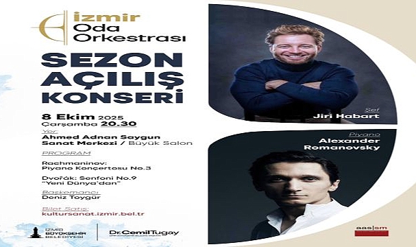 İzmir Büyükşehir Belediyesi’ne bağlı İzmir Oda Orkestrası, 2025-2026 konser sezonunu 8 Ekim Çarşamba saat 20.30’da Ahmed Adnan Saygun Sanat Merkezi Büyük Salon’da gerçekleştireceği görkemli bir konserle açıyor. Sezon açılışında orkestra, genç kuşağın dikkat çeken şeflerinden Jiri Habart yönetiminde sahneye çıkacak. Konserin solisti ise, uluslararası kariyeriyle övgü toplayan piyanist Alexander Romanovsky olacak. Romanovsky, piyano repertuvarının en zorlu eserlerinden biri olarak kabul edilen Sergei Rachmaninov’un 3. Piyano Konçertosunu seslendirecek.Konserin ikinci yarısında, klasik müziğin en sevilen senfonilerinden Antonín Dvořák’ın 9. Senfonisi “Yeni Dünya”dan seslendirilecek. Hem Avrupa müzik geleneğini hem de Amerika’dan aldığı esinleri yansıtan bu başyapıt, orkestranın güçlü anlatımıyla sezonun coşkulu başlangıcına damgasını vuracak. Orkestra başkemancılığını Deniz Toygür’ün üstleneceği konser, İzmir Oda Orkestrası’nın sanatsal vizyonunu ve uluslararası standartlardaki icrasını bir kez daha gözler önüne serecek.Bilet satış için kultursanat.izmir.bel.tr adresi ziyaret edilebilir.Cumhuriyet Bayramı ve 10 Kasım konserleriSezon açılışının ardından İzmir Oda Orkestrası, 28 Ekim’de Cumhuriyet Bayramı’nı özel bir programla kutlayacak. Cumhuriyet’in 102. yılına adanan bu konser, coşkulu repertuvarı ve İzmirli sanatseverlerin katılımıyla anlamlı bir buluşmaya dönüşecek. 10 Kasım’da ise Atatürk’ü anma konseriyle sahnede olacak orkestra, duygusal yoğunluğu yüksek seçilmiş eserlerle seyirciye farklı bir müzikal deneyim sunacak.Kasım ayında özel konuklar26 Kasım 2025’te, orkestra sahnesinde uluslararası alanda tanınan şef Jesko Sirvend yer alacak. Konsere, Berlin Filarmoni’nin başkemancı kadrosunda uzun yıllar yer alan keman virtüözü Florin Iliescu solist olarak katılacak. Bu konser, İzmir’de klasik müzikseverler için yılın en önemli sanat buluşmalarından biri olmaya aday.Aralık ayında klarnet yıldızı ve yılbaşı konseri10 Aralık 2025’te, dünyaca ünlü klarnet sanatçısı Pablo Barragán İzmir Oda Orkestrası ile aynı sahneyi paylaşacak. Sanatçının incelikli tekniği ve güçlü yorumuyla, klasik klarnet repertuvarının seçkin eserleri İzmirli müzikseverlerle buluşacak. Yıl, geleneksel coşkusuyla Yılbaşı Konseri ile noktalanacak. İzmir Oda Orkestrası, bu kez çok yönlü müzikal kimliğiyle tanınan Latin topluluk Los Pitutos ile birlikte sahneye çıkarak izleyicilere eğlenceli, renkli ve unutulmaz bir yeni yıl kutlaması yaşatacak.“Sanatla büyüyen bir şehir” hedefiİzmir Oda Orkestrası, bu sezon da klasik müziği geniş kitlelere ulaştırmayı, İzmir’in kültür-sanat yaşamını ulusal ve uluslararası düzeyde temsil etmeyi amaçlıyor. Orkestra, yalnızca büyük konser salonlarında değil, İzmir’in farklı bölgelerinde düzenleyeceği özel projelerle de sanatın erişilebilirliğini artırmayı hedefliyor.
